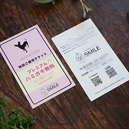 「紹介カード」「ショップカード」「カルテ」「ロゴ」「リーフレット」「パンフレット」「POP」「封筒」などなど、もっともっと、いろいろとお客様のご要望にお答えできるかもしれません。諦めずに、まずは「こんなのは作れますか?」とお問い合わせして見て下さい。皆様からのご相談をどんどんお待ちしております。