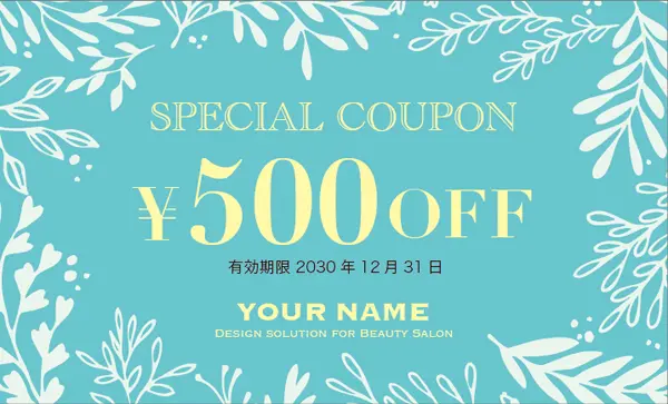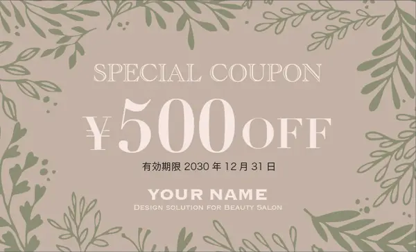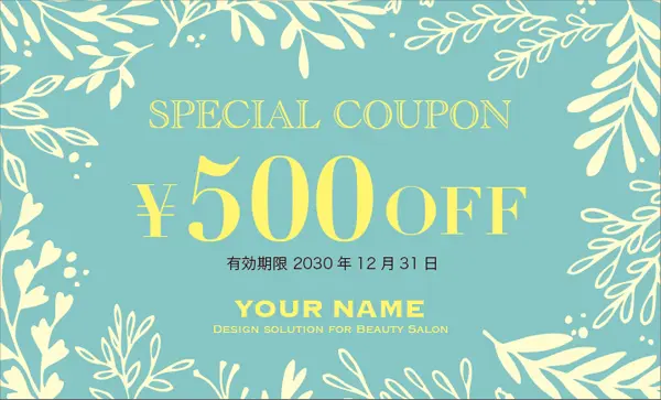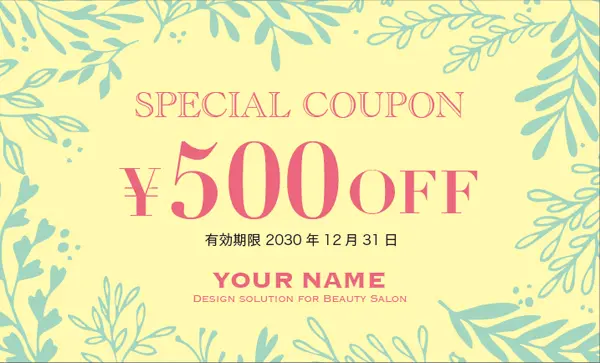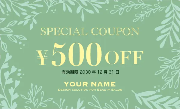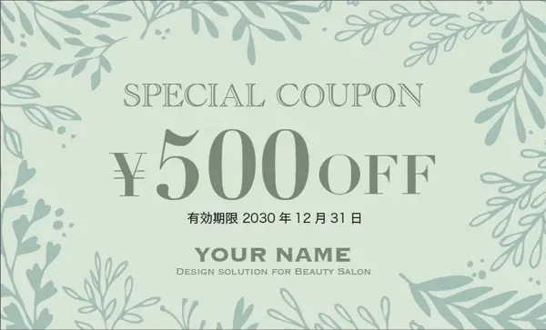 クーポン割引券TKM-031|かわいい夏のリゾート・グリーンな植物が自然感あふれるの落ち着き感あるおしゃれな割引クーポン