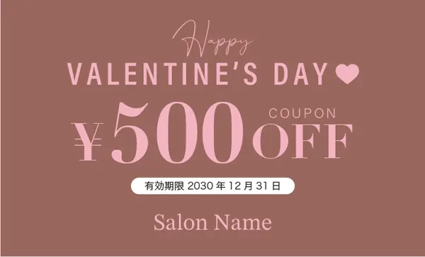 バレンタインクーポン割引券TVM-001|美容サロン向けのバレンタインデークーポン!シンプルな文字と可愛いハートのレイアウトのバレンタインクーポン