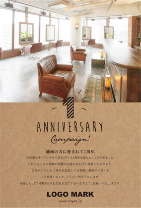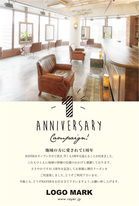 美容室・ネイルサロン・エステサロン・まつエクサロン・リラクゼーション向けの手書き風でサロン写真を入れられるおしゃれな周年DMデザイン。 周年記念DMは、お客様に感謝の気持ちを伝える絶好の機会です。ダイレクトメールをお送りすることで顧客は自分が重要にされていると感じ、顧客満足度を向上できます! 周年記念DMには特別なプロモーションや割引クーポンを添付することで、リピート購買を促進できます。