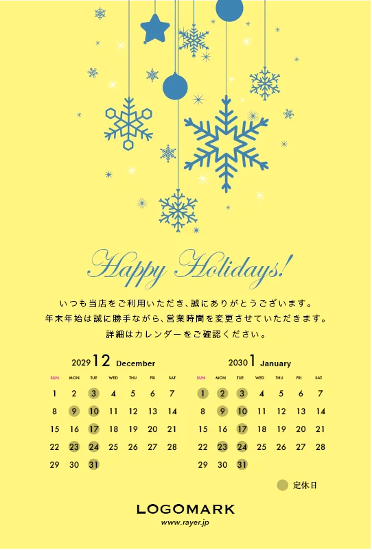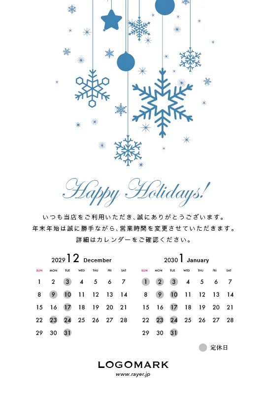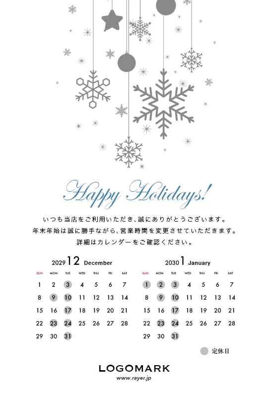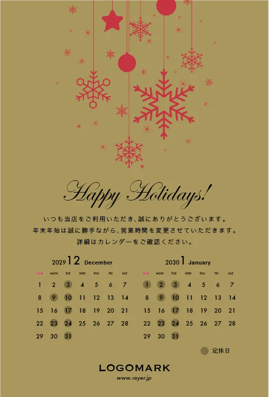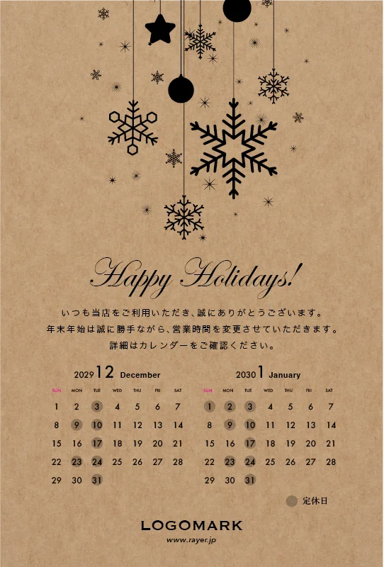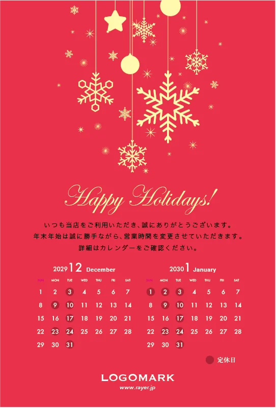 年末営業日カレンダーDMはがき