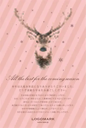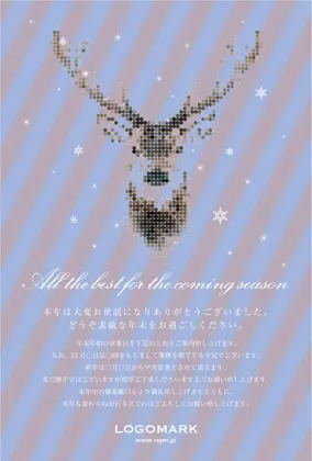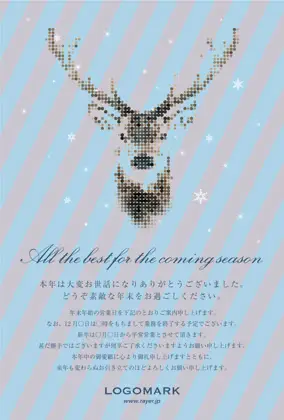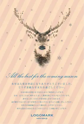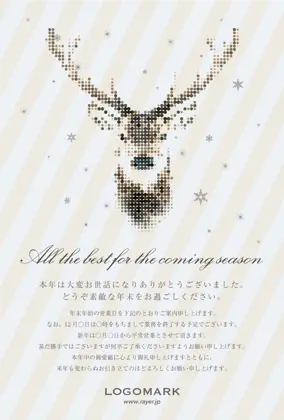 /年末挨拶状グリーティングカードDMX-031|かわいい鹿ドット絵ストライプおしゃれなクリスマスカード年末挨拶状