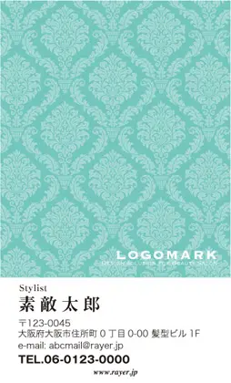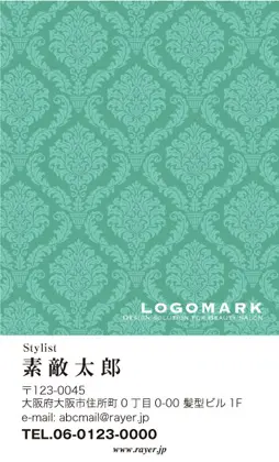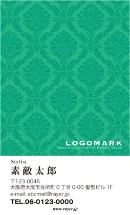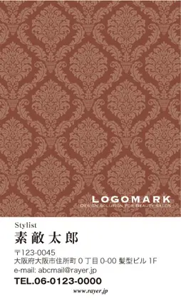 サロン名刺MEI-005|ラグジュアリーでゴージャス!クラシックな唐草壁紙パターンのカッコいい落ち着いた雰囲気のおしゃれな美容サロン名刺デザイン