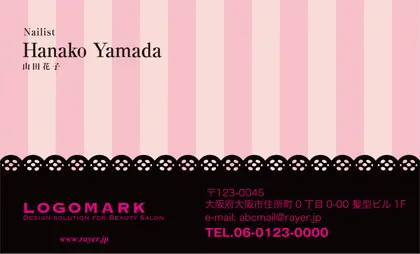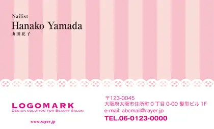 サロン名刺MEI-007|可愛いストライプとロマンティックなレース模様の大人かわいいオシャレな美容サロン名刺デザイン