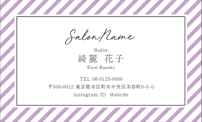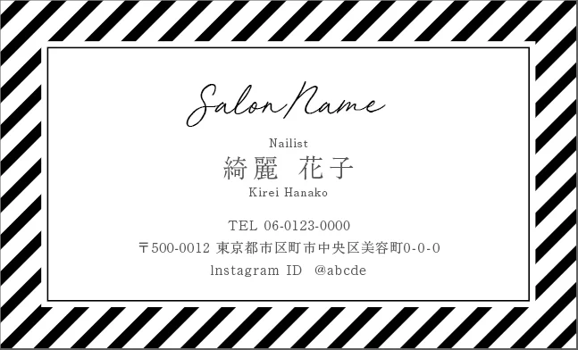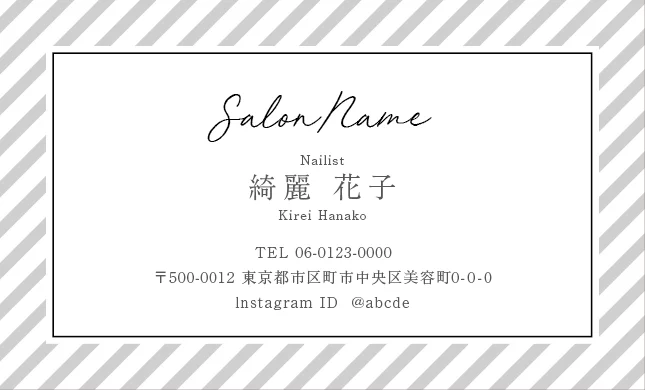 サロン名刺MEI-023|斜めストライプのフレームデザインが動きと軽やかさを感じるおしゃれデザイン美容サロン名刺デザイン