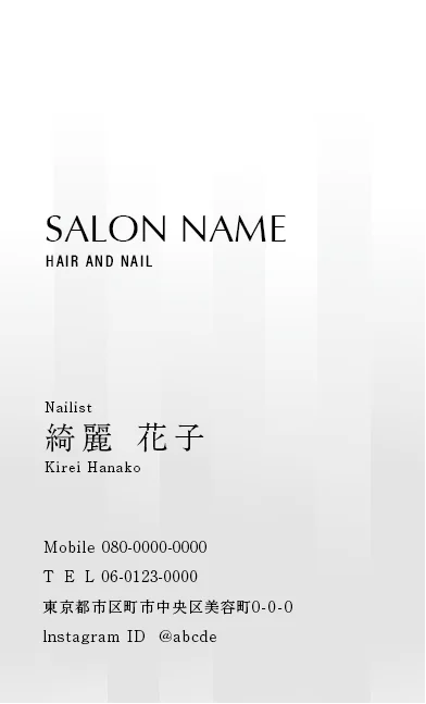 サロン名刺MEI-035|斜めストライプのフレームデザインが動きと軽やかさを感じるおしゃれデザイン美容サロン名刺デザイン