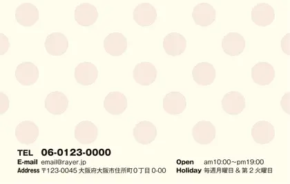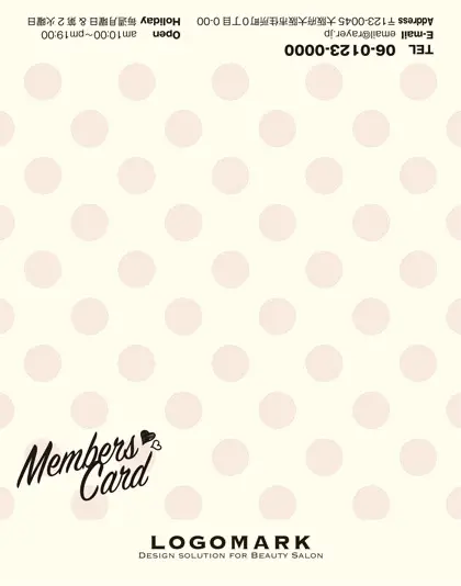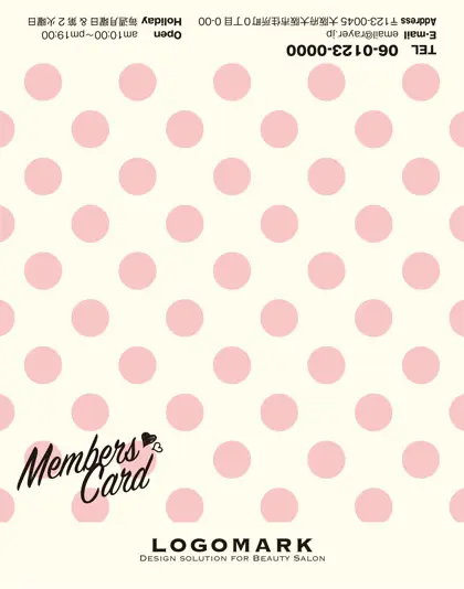 美容室・ネイルサロン・エステサロン・まつエクサロン・リラクゼーション向けの2折スタンプカード。 美容室やネイルサロン、エステサロンにぴったりな、POPでキッチュなパステルカラーの大きめ水玉デザインがガーリーかわいいおしゃれな2折スタンプカードが誕生しました。 目を引くデザインの特徴である大胆な水玉模様が、おしゃれでキュートな雰囲気を演出する2折スタンプカード。お客様に特別な美容のひとときを想像させる、可愛らしいデザインの2折スタンプカードです。