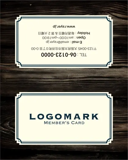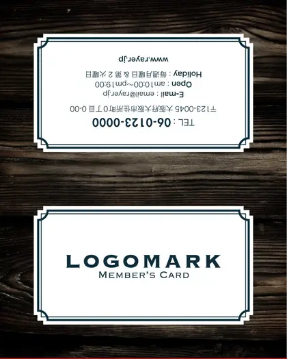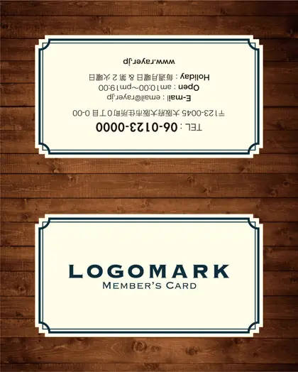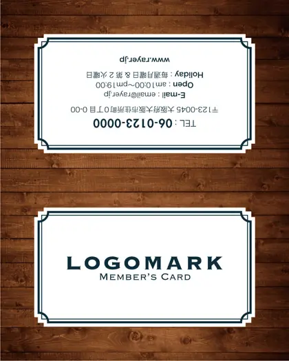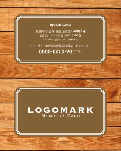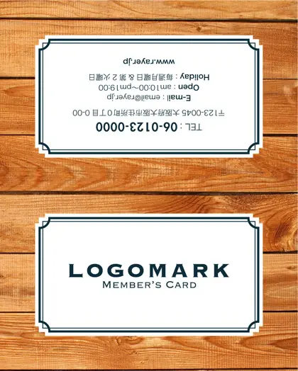 2つ折りスタンプカード/カードサイズ【小】PCB-014|木目ウッド調のナチュラルで自然・優雅な雰囲気を演出するシンプルデザインにタグ風のフレームがおしゃれなデザインの2折スタンプカード