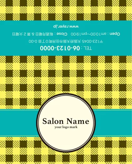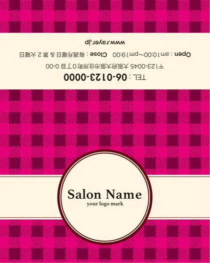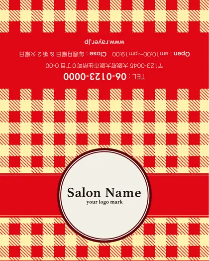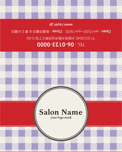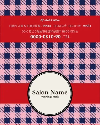 美容室・ネイルサロン・エステサロン・まつエクサロン・リラクゼーション向けの2折スタンプカード。 焼き菓子のパッケージを彷彿とさせ、チェック柄の可愛らしさが特徴の2折スタンプカードが登場しました。美容室、ネイルサロン、エステサロンにぴったりなこの2折スタンプカードデザインは、まるでお菓子のような愛らしさがあり、丸い可愛いフレームがアクセント。お客様に楽しさと癒しをもたらす、特別な2折スタンプカードお渡ししましょう。