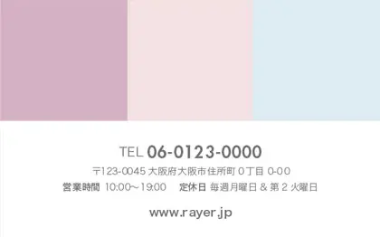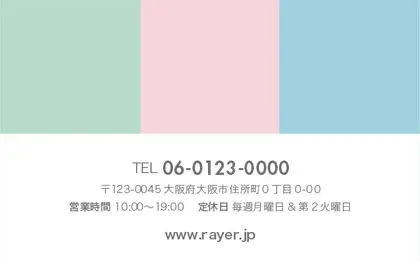 美容室・ネイルサロン・エステサロン・まつエクサロン・リラクゼーション向けの2折スタンプカード。 絶妙な3色の調和が輝く、シンプルでありながらおしゃれで可愛らしい2折スタンプカードデザインが登場しました。美容室、ネイルサロン、エステサロンに相応しいこのスタイリッシュな2折スタンプカードデザインは、色彩の魔法でお客様を魅了!?。可愛さと洗練が見事に融合し、おしゃれな特別感を演出します。ポイントがたまるたびに、色とりどりの美しさをお楽しんでいただける2折スタンプカードではないでしょうか(*^^*)