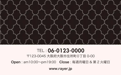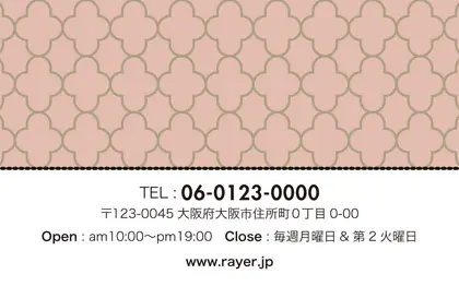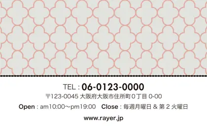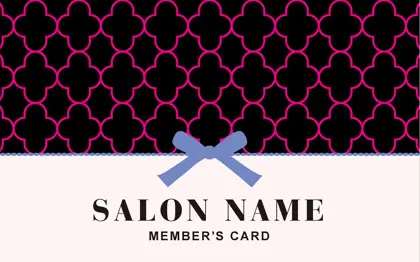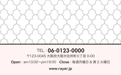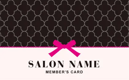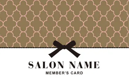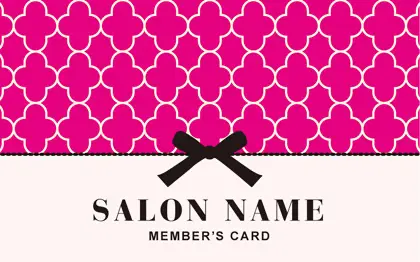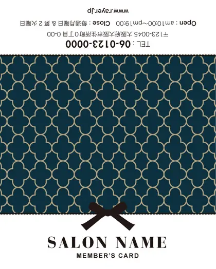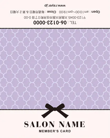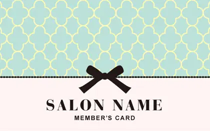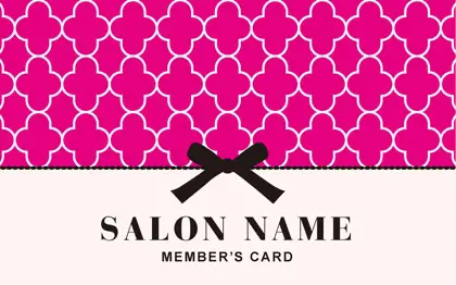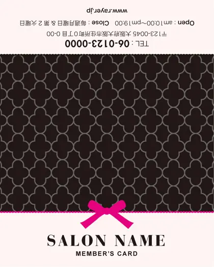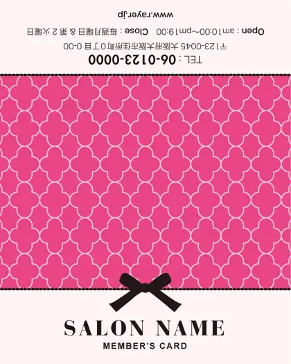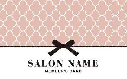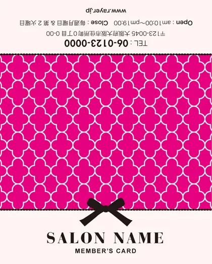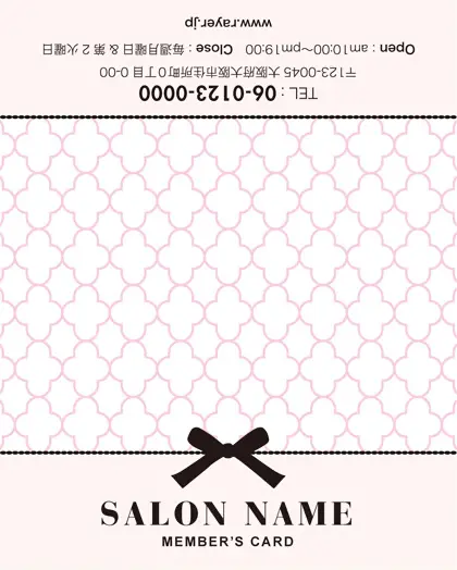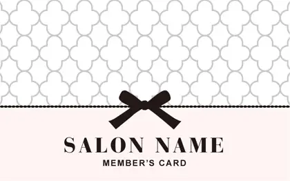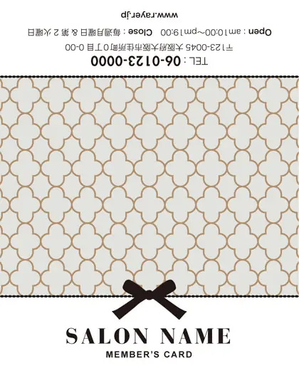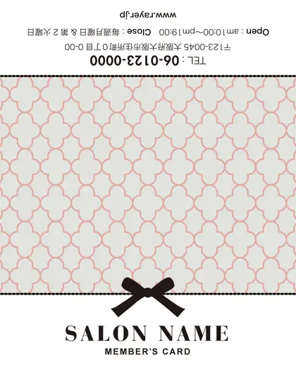 美容室・ネイルサロン・エステサロン・まつエクサロン・リラクゼーション向けの2折スタンプカード。 ガーリーでかわいいデザインの中に、大人コンサバ風のエレガンスが漂う、美容室、ネイルサロン、エステサロン向けのおしゃれな2折スタンプカードが完成しました。 幾何学的でクラシックなパターンに、可愛いリボンがアクセント。デザインのキーワードは、幾何学、パターン、クラシック、リボン。可愛さと上品さが見事に調和した2折スタンプカードで、お客様に特別感を提供します。