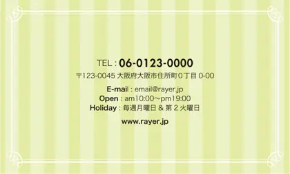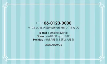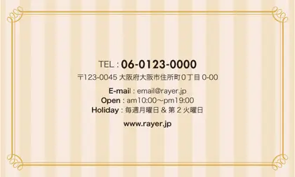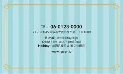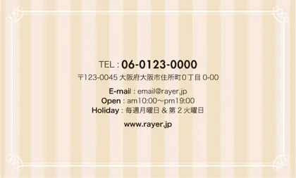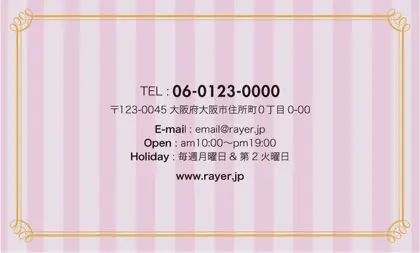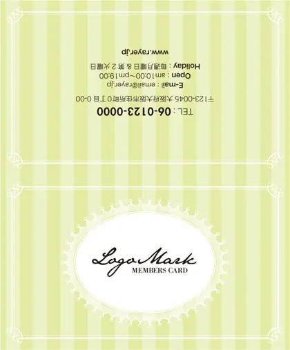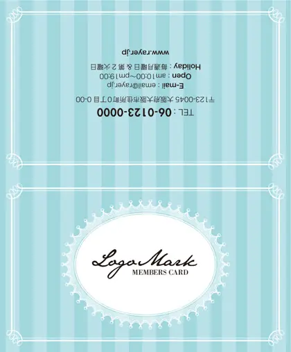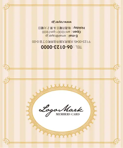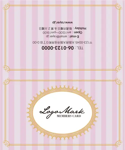 2つ折りポイントカード/名刺サイズ【大】PMB-008|ストライプ模様とお菓子箱の様なアンティーク枠が可愛いおしゃれなデザインの2折ポイントカード
