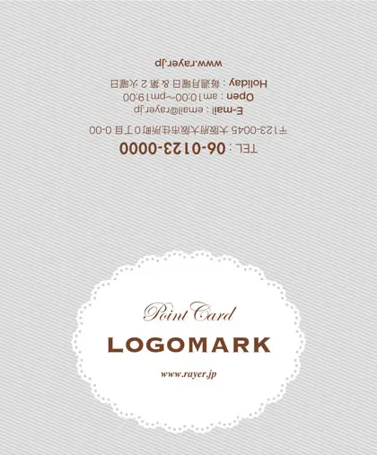 美容室・ネイルサロン・エステサロン・まつエクサロン・リラクゼーション向けの2折ポイントカード。 楕円の可愛らしいレースデザインのフレームに、パステルカラーが華やかなガーリーな2折ポイントカードが完成しました。 ケーキ屋さんにも最適なデザインで、甘く美味しい雰囲気が漂います。2折ポイントカードデザインのキーワードはガーリー。 お客様に楽しさと甘美なひとときを提供する、おしゃれな2折ポイントカードです。