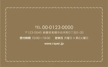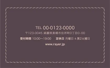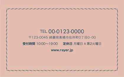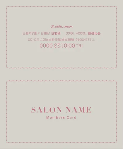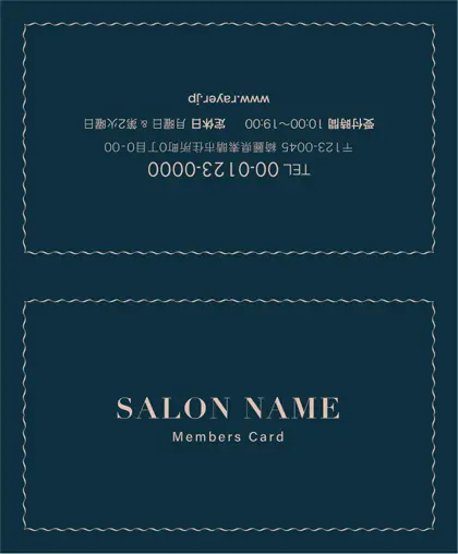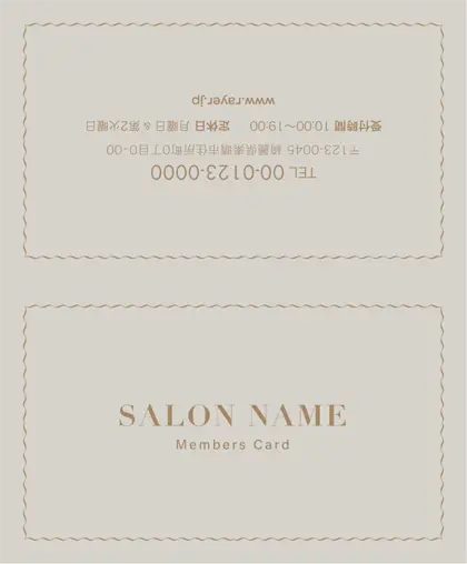 美容室・ネイルサロン・エステサロン・まつエクサロン・リラクゼーション向けの2折ポイントカード。 エレガント・クラシックカードーデザインの2折ポイントカード│上品で洗練されたシンプルおしゃれ2折ポイントカードデザイン。繊細な波線ボーダーが温かみのある親しみやすさを演出しながらも、品格のある印象を与えるおしゃれな2折ポイントカード