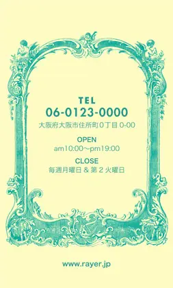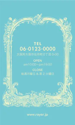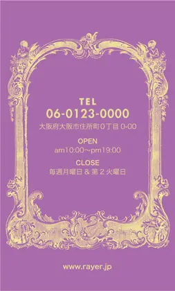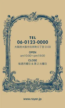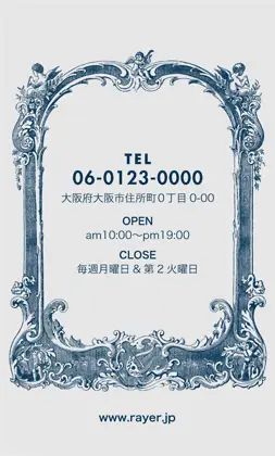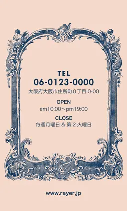 美容室・ネイルサロン・エステサロン・まつエクサロン・リラクゼーション向けの2折ポイントカード。 美容室やネイルサロン、エステサロンに素敵で優雅なアンティーク感をもたらす、バロック様式を彷彿とさせるフレームデザインが特徴の2折ポイントカードが誕生しました。 細部にまでこだわった装飾のフレームがエレガントで、美の芸術を感じさせます。この2折ポイントカードで、顧客満足を高めるツールを作ってみませんか?