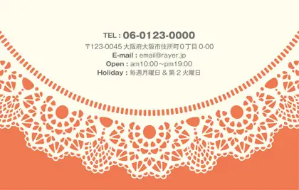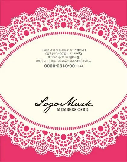 2つ折り次回予約カード/カードサイズ【小】RCB-010|かわいいドイリーレースペーパー模様がガーリーな女の子デザインのおしゃれ2折り次回予約カード