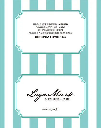 2つ折り次回予約カード/カードサイズ【小】RCB-011|コンサバな雰囲気の大人ガーリーな大きめのストライプが可愛いオシャレデザインの2折り次回予約カード