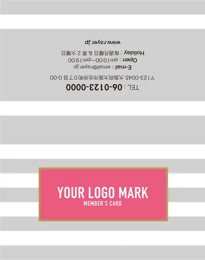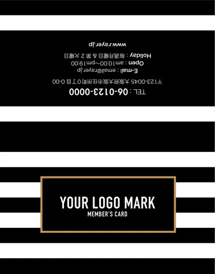 2つ折り次回予約カード/カードサイズ【小】RCB-021|コンサバ風パターン、白黒のストライプデザインがクール!可愛い色のタグフレームが大人シンプル&かわいいおしゃれなデザインの2折り次回予約カード