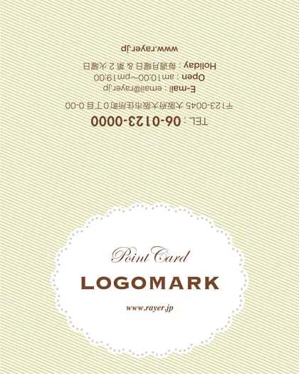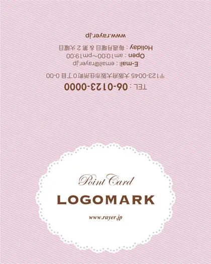 2つ折り次回予約カード/カードサイズ【小】RCB-023|楕円の可愛らしいレースデザインのフレームに、パステルカラーが華やかなデザイン。ケーキ屋さんにも最適なデザインで、甘く美味しい雰囲気が漂うデザインの2折り次回予約カード