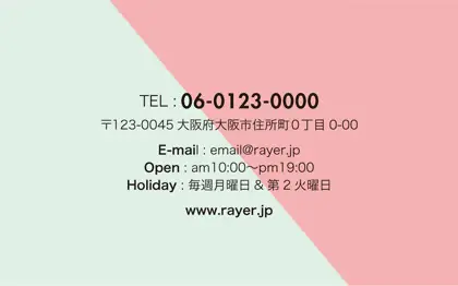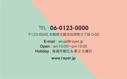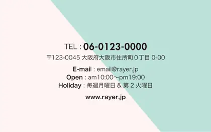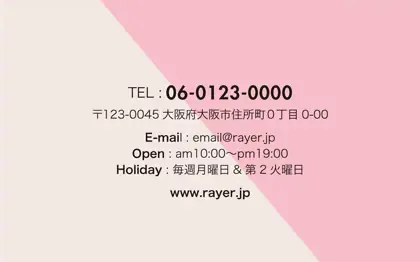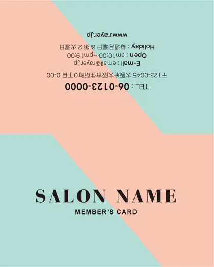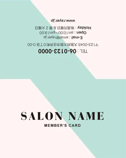 2つ折り次回予約カード/カードサイズ【小】RCB-026|大人可愛い、斜めで切り分けられたハイブランドの様なおしゃれさを感じさせるツートンカラーのデザインの2折り次回予約カード