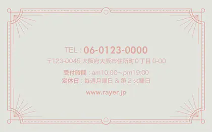 2つ折り次回予約カード/カードサイズ【小】RCB-040|アンティーク風フレームと上品なダステーカラーが織りなす、大人可愛いおしゃれな2折り次回予約カード