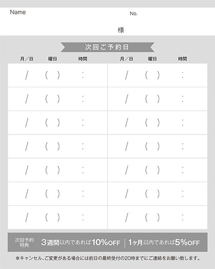 二つ折り次回予約カード仕様
