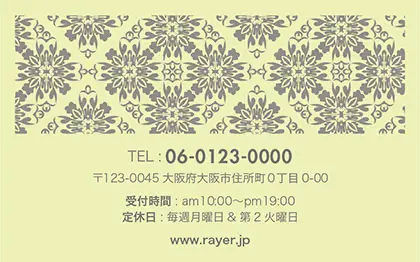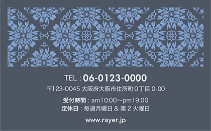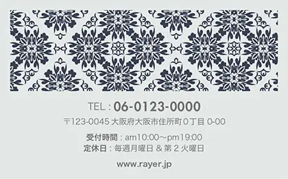 2つ折り次回予約カード/カードサイズ【小】RCB-041|落ち着いた色味のクラシックパターンが可愛い!丸フレームのおしゃれ2折り次回予約カード