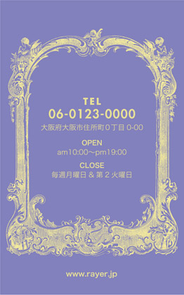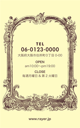 2つ折り次回予約カード/カードサイズ【小】RCB-503|素敵で優雅なアンティーク感をもたらす、バロック様式を彷彿とさせるフレームデザインの2折り次回予約カード