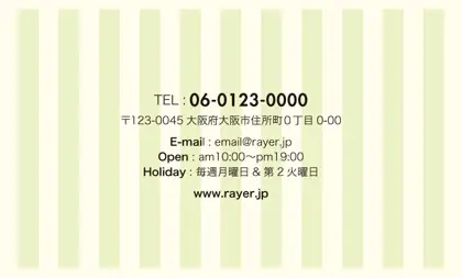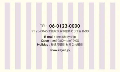 2つ折り予約カード/名刺サイズ【大】RMB-001|ソフトで優しいパステルカラーのシンプルでかわいいおしゃれなストライプデザインの2折り予約カード