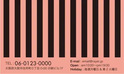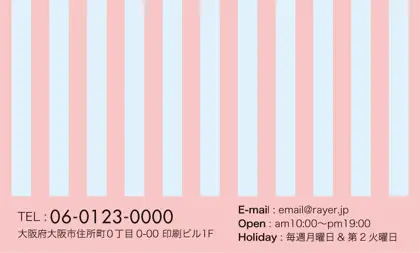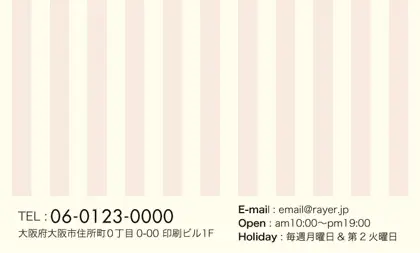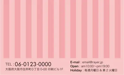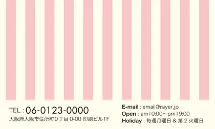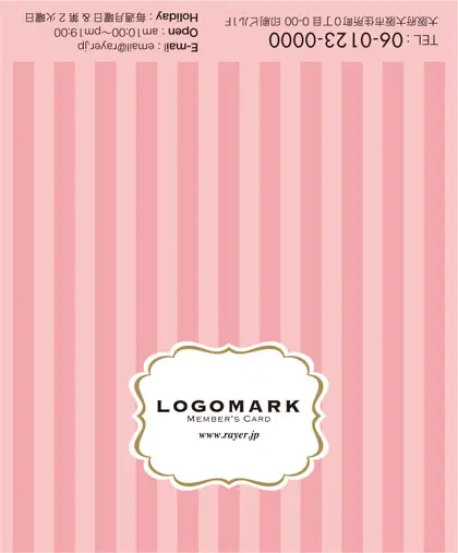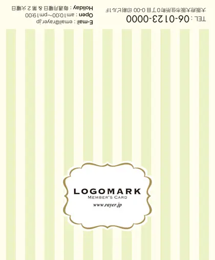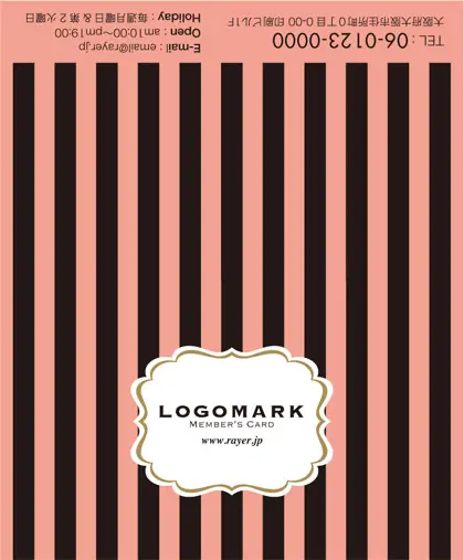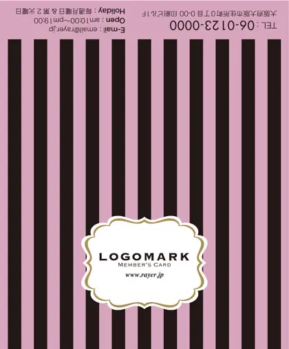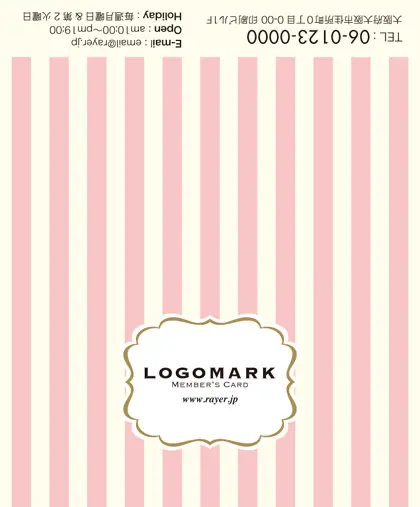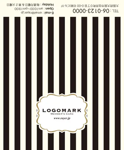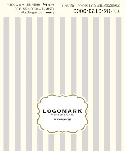 2つ折り予約カード/名刺サイズ【大】RMB-003|大人かわいいストライプと中央にかわいいロゴを配置したおしゃれなフレームが特徴の2折り予約カード