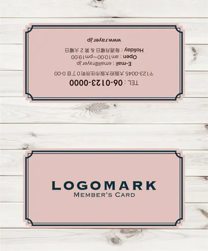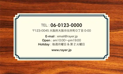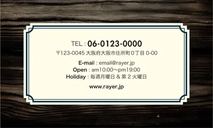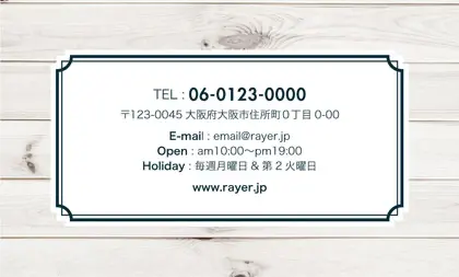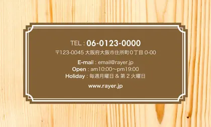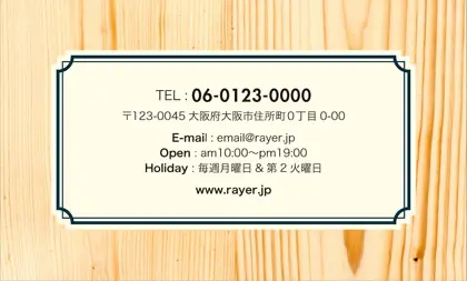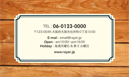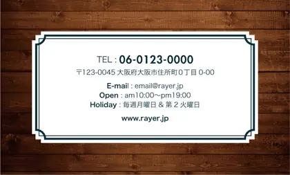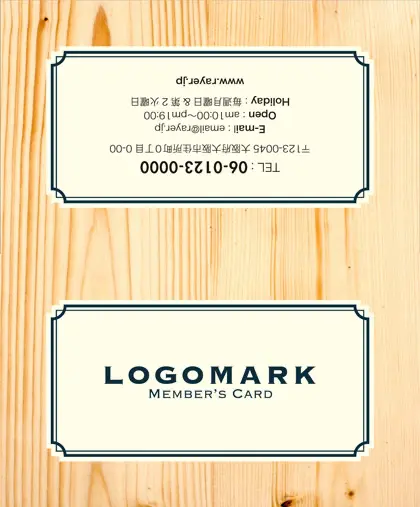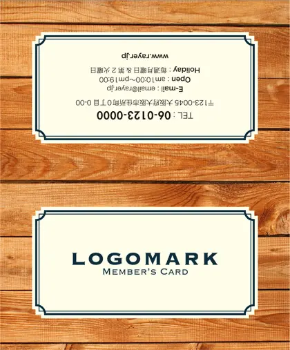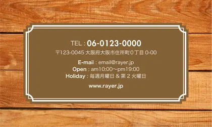 2つ折り予約カード/名刺サイズ【大】RMB-014|木目ウッド調のナチュラルで自然・優雅な雰囲気を演出するシンプルデザインにタグ風のフレームがおしゃれなデザインの2折り予約カード