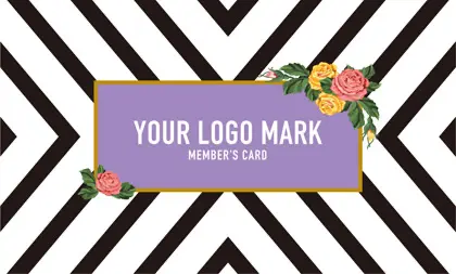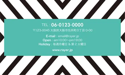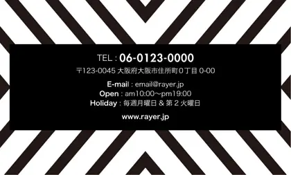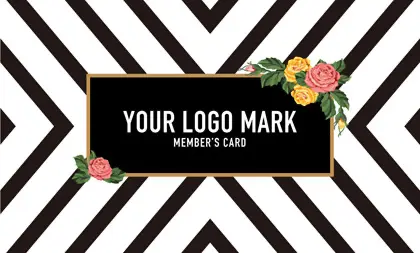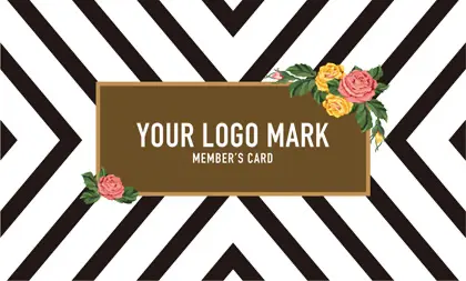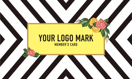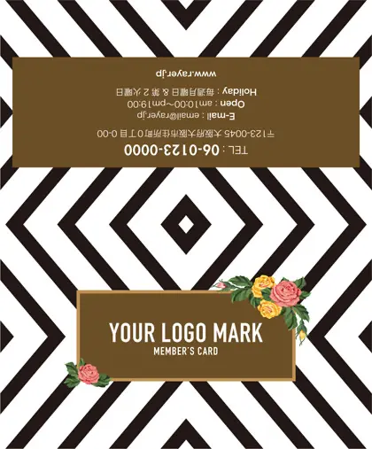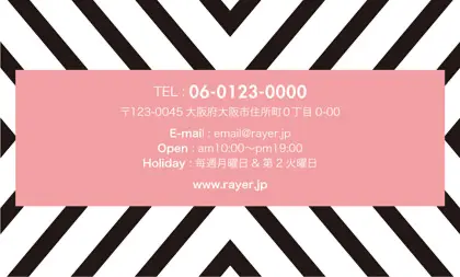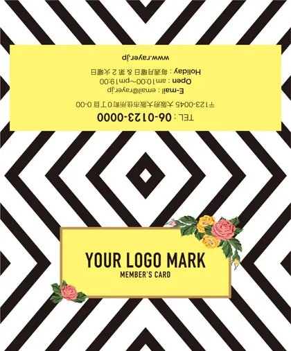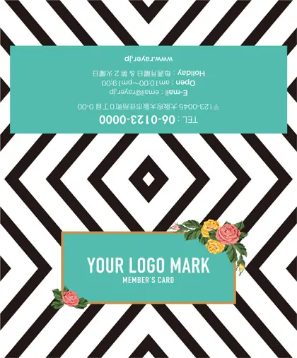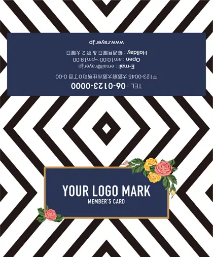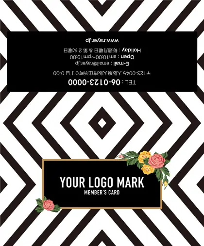 2つ折り予約カード/名刺サイズ【大】RMB-019|コンサバ風パターン、白黒の線デザインと可愛い色のタグフレームのお花が可愛いアクセント!大人カッコいい&かわいいおしゃれなデザインの2折り予約カード