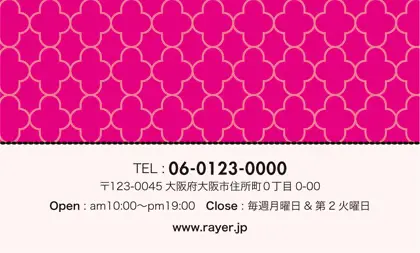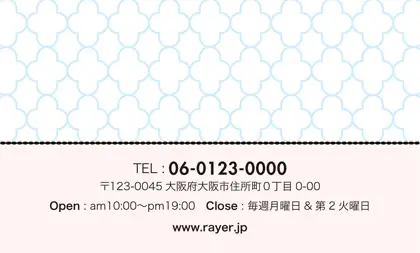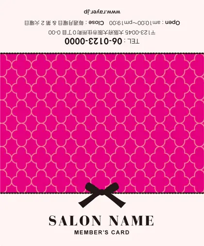2つ折り予約カード/名刺サイズ【大】RMB-028|ガーリーかわいいパターンとリボンがとっても可愛い!大人コンサバ風のおしゃれなデザイン2折り予約カード