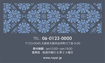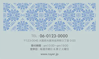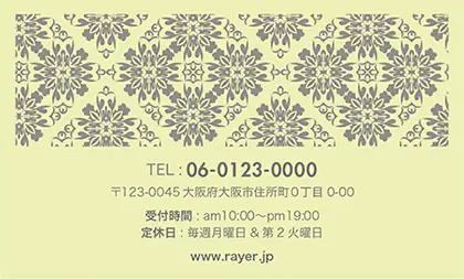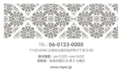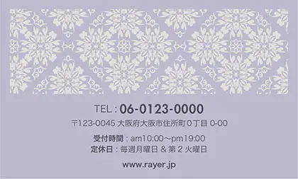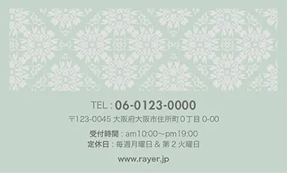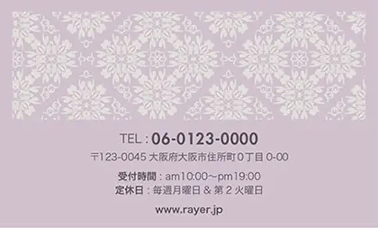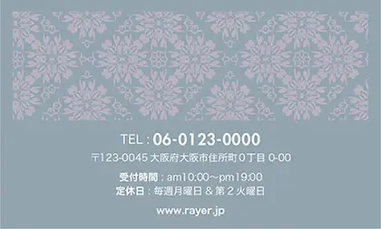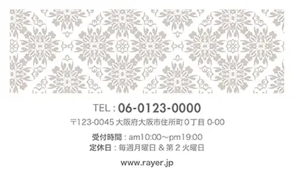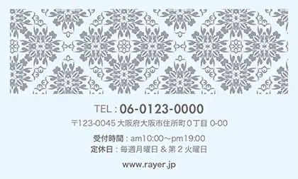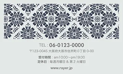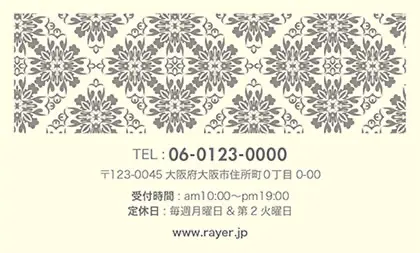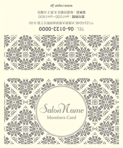 2つ折り予約カード/名刺サイズ【大】RMB-041|落ち着いた色味のクラシックパターンが可愛い!丸フレームのおしゃれ2折り予約カード